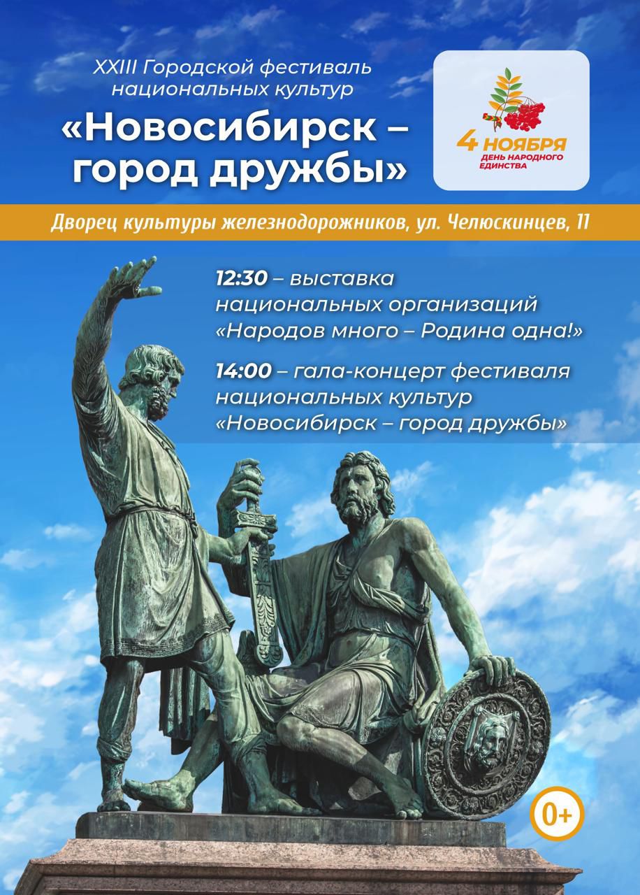 4 ноября, в День народного единства, мы приглашаем всех на большой праздник — XXIII Городской фестиваль национальных культур «Новосибирск – город дружбы»!